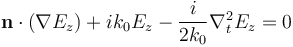 Esta ecuación incluye un término de segundo orden, que toma la segunda derivada tangencial del campo eléctrico en la frontera. Esto también es bastante fácil de implementar en la arquitectura del software COMSOL.