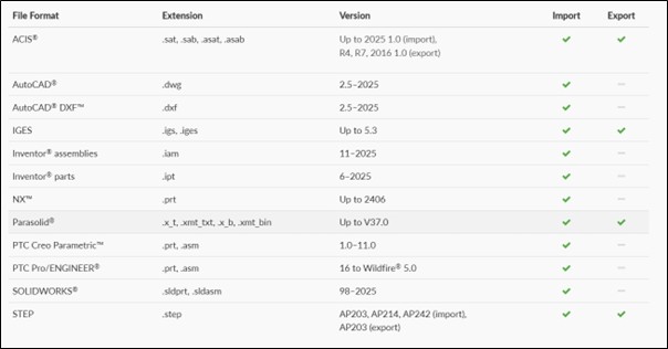 Figura 3. Formato de ficheros que se pueden importar/exportar con el CAD Import Module de COMSOL Multiphyscis®.