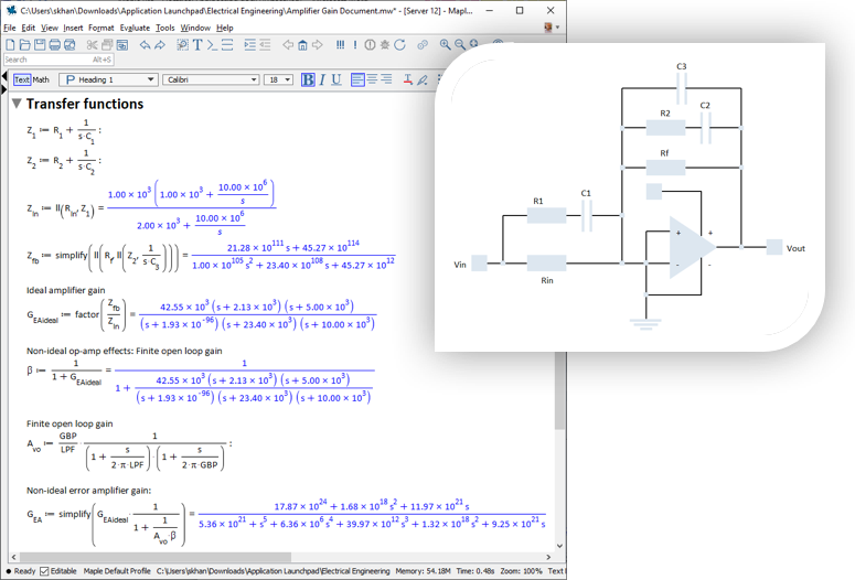El conjunto de funcionalidades de Maple es ideal para los cálculos que requieren los ingenieros en general, y particularmente los ingenieros eléctricos, electrónicos y de telecomunicación.Capturar la intención del diseño