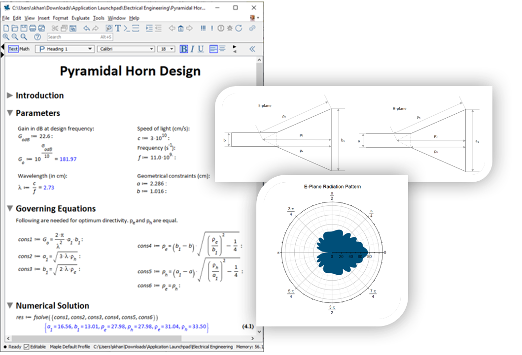 Los profesionales del diseño de antenas y radares utilizan Maple para crear documentos de diseño ejecutables que capturan los aspectos espaciales, temporales y espectrales de sus diseños. Estos documentos pueden contener las ecuaciones, la programación y las visualizaciones necesarias para el diseño. Los documentos de diseño se pueden implementar en la web o en el escritorio. |