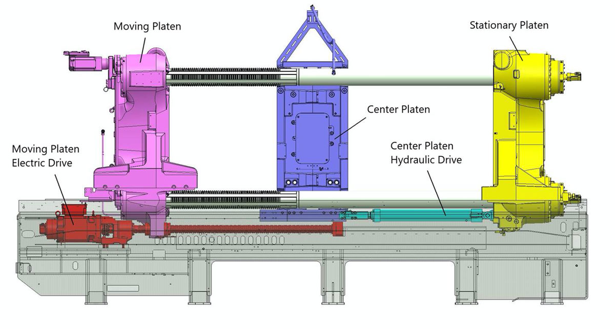 Figura 1: Un modelo simplificado de la nueva máquina de moldeado por inyección de Niigon, que utiliza dos unidades de moldeado por inyección que funcionan en paralelo.