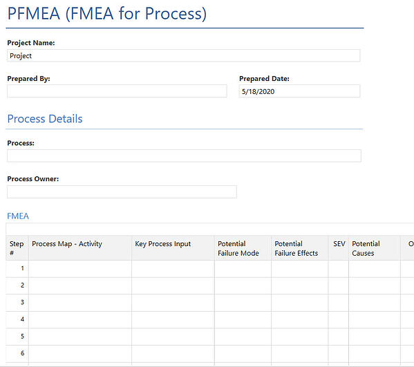 A continuación se muestra un ejemplo de un formulario PFMEA en Minitab Workspace: