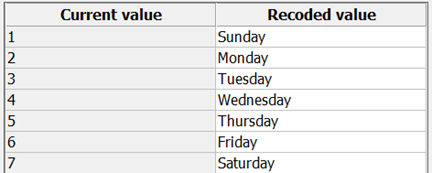 Minitab también ofrece a los usuarios una manera sencilla de gestionar errores tipográficos o recodificar respuestas por motivos gráficos en el menú Datos > Recodificar. Para trabajos de recodificación más pequeños, la opción estándar Datos > Recodificar > A texto permite gestionar fácilmente la recodificación sin necesidad de crear largas sentencias "si/entonces" anidadas. Complete fácilmente la tabla para recodificar las respuestas: