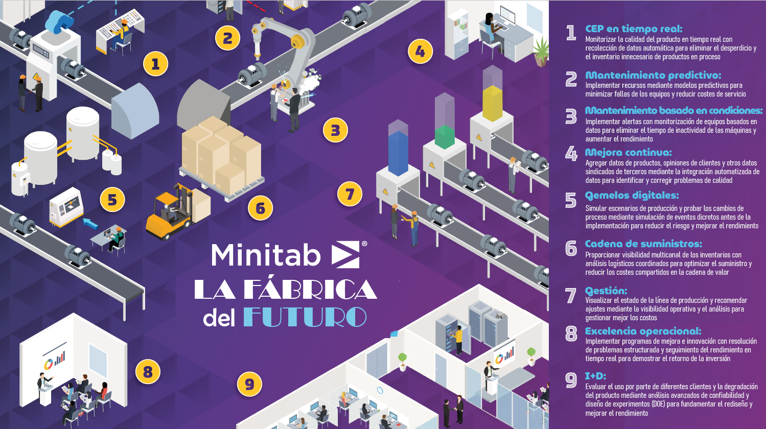 Minitab respalda ese proceso en cada etapa, ya sea que una organización esté comenzando con la recopilación de datos o avanzando hacia el análisis predictivo y la mejora continua a gran escala.