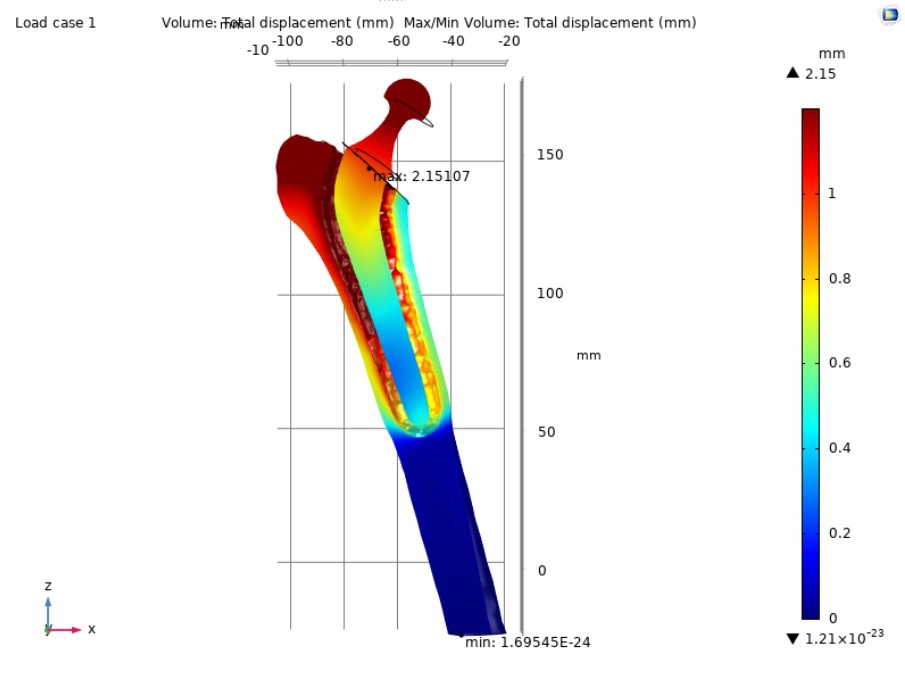 Nuno Eduardo Dias Gueiral El modelo creado es un ejemplo de la modelización numérica de la biomecánica de articulaciones humanas. En este caso, nos centramos en la unión entre la cadera y la pierna, que está sujeta a un mayor desgaste a lo largo de la vida del ser humano. Para ello, utilizaremos el método de elementos finitos operado por COMSOL Multiphysics. |