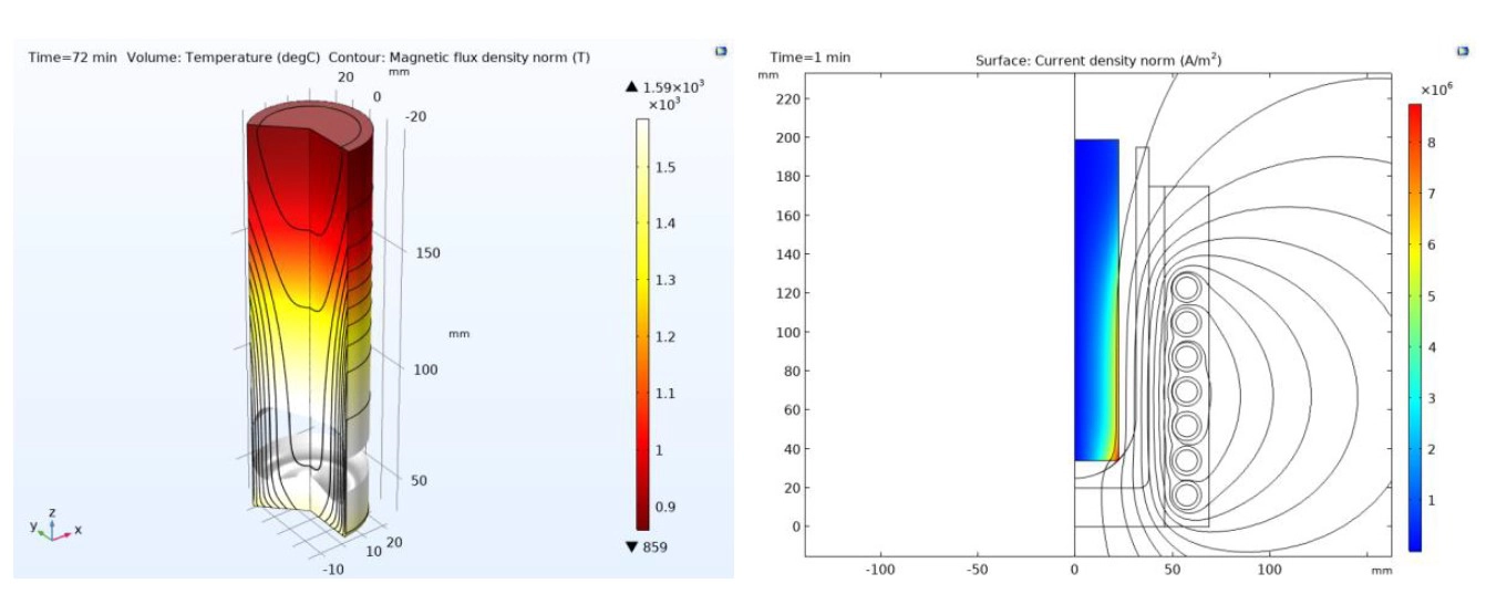 Pablo García Michelena Nos centramos en el desarrollo de una herramienta numérica de modelización multifísica para los procesos de calentamiento y fusión por inducción en vacío; y validarla experimentalmente en una instalación experimental a escala semi-industrial en la Mondragon Unibertsitatea. Gracias al modelo desarrollado, es posible estudiar el efecto de cada parámetro del proceso en el fenómeno de inducción electromagnética e identificar aquellos con mayor relevancia, así como su interacción mutua. |
