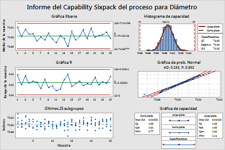 Análisis de capacidad 6 en 1 (Capability Sixpack) con Minitab