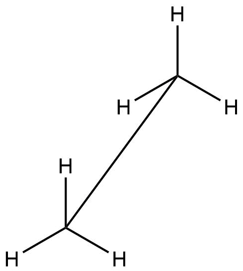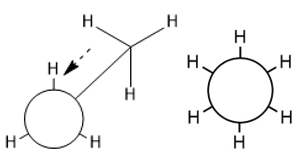 Para dibujar una molécula de etano en proyección de Newman será preciso dibujar un metano en el frente y otro en el fondo, respectivamente. Para ello es tan sencillo como usar el comando “enlace sólido” para introducir el primer enlace simple y, a partir de ahí, dibujar la siguiente estructura: