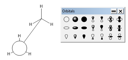 Una vez listos los componentes para la proyección de Newman el siguiente paso será introducir en la estructura el círculo característico de este tipo de proyecciones. Para lo cual vamos a utilizar la herramienta “orbital” que podemos encontrar en View > Other Toolbars > Orbitals, o directamente en la columna izquierda de comandos de dibujo.