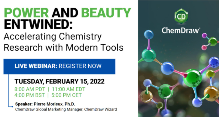 Únase a Pierre Morieux, Product Manager de Chem Draw, Director de Marketing de ChemDraw y ChemDraw Wizar, el próximo martes 15 de febrero a las (11:00 EST / 17:00 CET) mientras presenta la versión 21.0 de ChemDraw y ChemOffice en este nuevo webinar de C&E News.