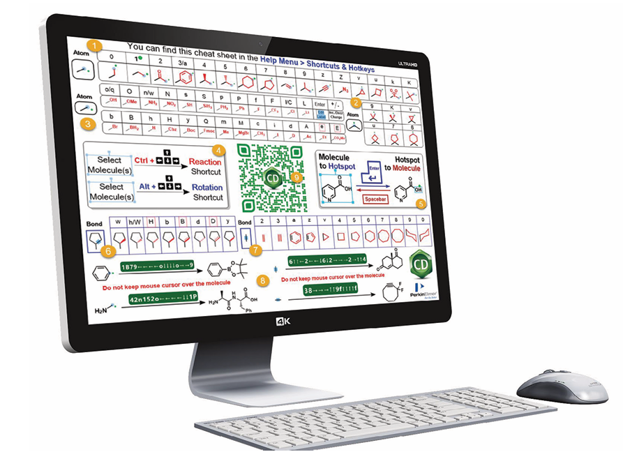Las teclas de acceso rápido, un elemento básico de ChemDraw desde hace mucho tiempo, (presiones de una sola tecla del teclado sobre un átomo o un enlace para provocar una acción) han evolucionado dramáticamente en los últimos cuatro años.