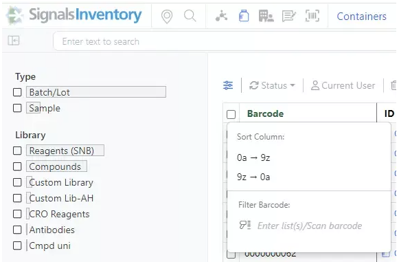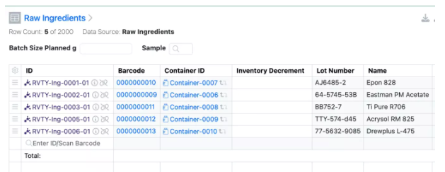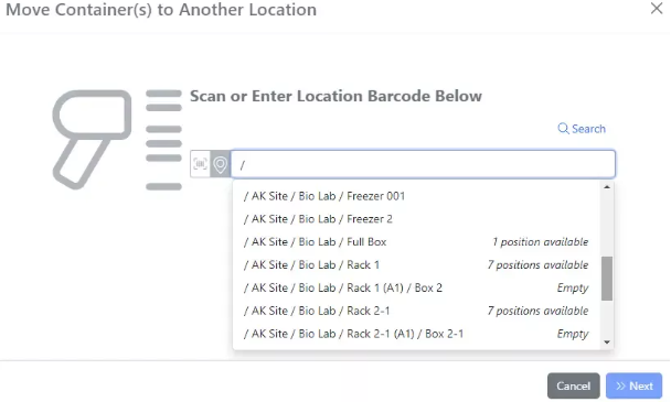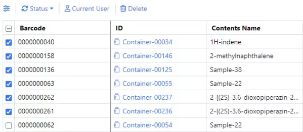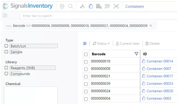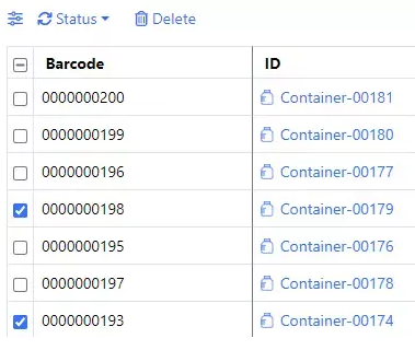 Puede escanear o pegar la lista de códigos de barras en la tabla de búsqueda de contenedores.