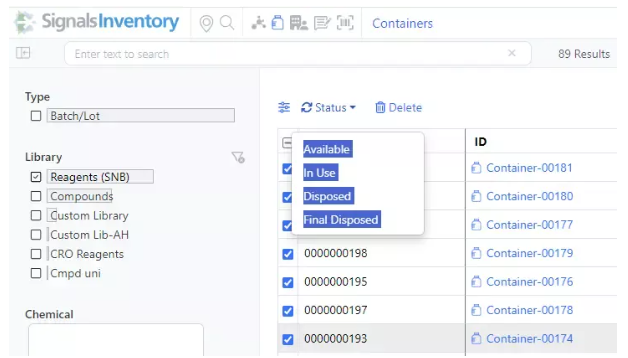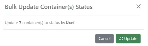Los usuarios con los privilegios adecuados podrán actualizar de forma masiva el estado de los contenedores desde la tabla de búsqueda de contenedores.