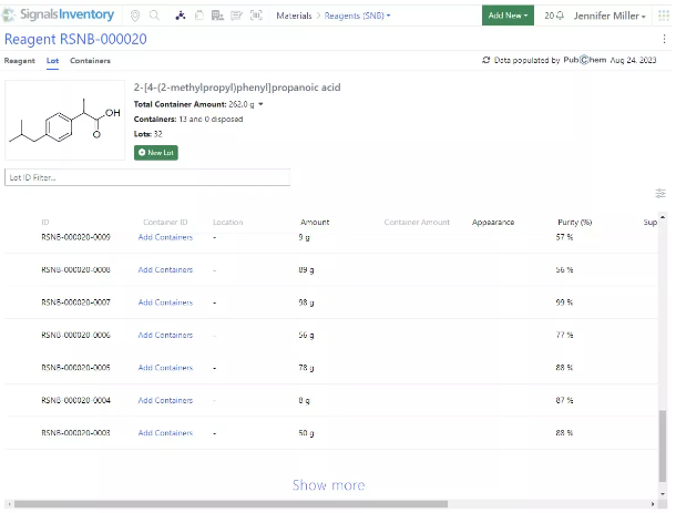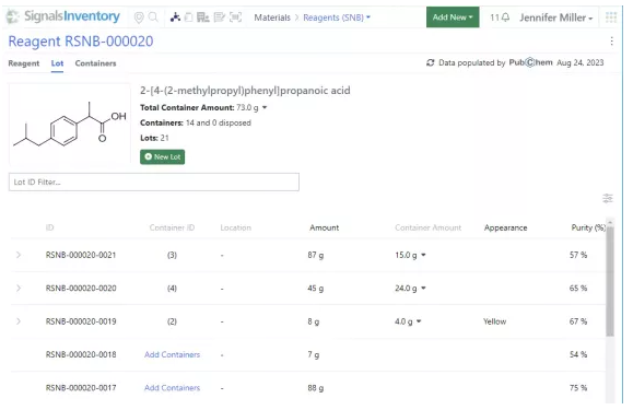 El material debe formar parte de una biblioteca de materiales de reactivos con la opción "Importar desde PubChem" habilitada en Configuración del sistema. Además, el material debe tener un número CAS válido.