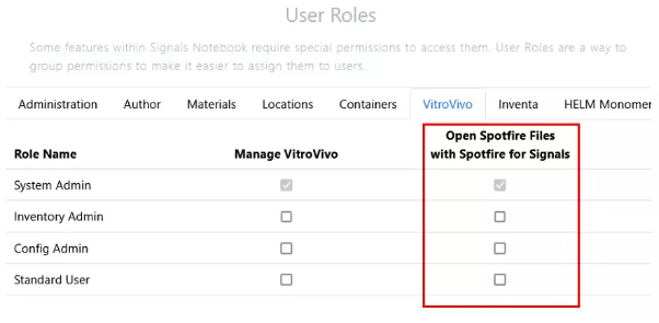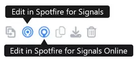 Si la configuración de Spotfire está desactivada, hay opciones adicionales de Spotfire para señales disponibles si se concede el privilegio Abrir archivo de Spotfire con Spotfire para señales. Este privilegio es útil durante la transición de OnPrem Spotfire a Spotfire para las señales incluidas en Signals Research Suite, ya que el usuario tendrá todas las opciones de apertura disponibles.