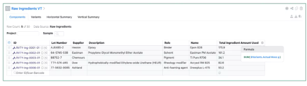 También hemos añadido la posibilidad de calcular una SUMA de valores en las Variantes en los Componentes. La función SUM calcula la suma de una fila determinada en todas las variantes, que se muestran en esa fila en los componentes.