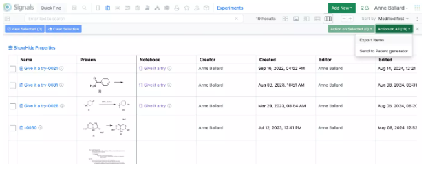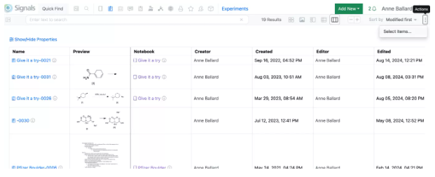 BioAssay/Structured Data es una aplicación que ayuda a los biólogos a almacenar, analizar y crear informes sobre datos de ensayos biológicos. BioAssay/Structured Data está optimizado para el manejo de datos relacionados con el cribado de alto rendimiento. Sin embargo, puede utilizarse eficazmente para gestionar datos relacionados con estudios de bajo rendimiento e in vivo. Los datos de los bioensayos en el E-Notebook ahora se pueden mostrar en su totalidad en el Archivo del ELN, y el contenido original se puede descargar como .csv.
