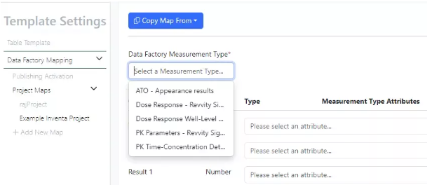 Si se desea (no es obligatorio), se pueden asignar campos adicionales de la plantilla de ADO/experimento al atributo Tipo de medición. Estos datos adicionales se anexarán a los datos del ADT cuando se publiquen: