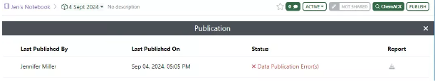 Haga clic en el botón gris Publicación para ver si hay algún error: