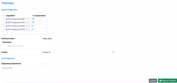 Una vez que se ha definido y activado la biblioteca, los usuarios pueden crear nuevas entradas, completando las propiedades de nivel de activo y lote, además de completar los datos de composición basados en tablas.