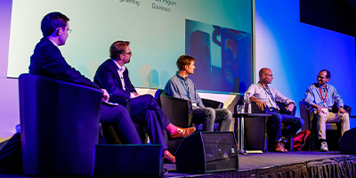 - Conferencias magistrales: Presentaciones inspiradoras sobre cómo los líderes de sus industrias están utilizando la simulación, así como un primer vistazo a la última versión de COMSOL Multiphysics®.