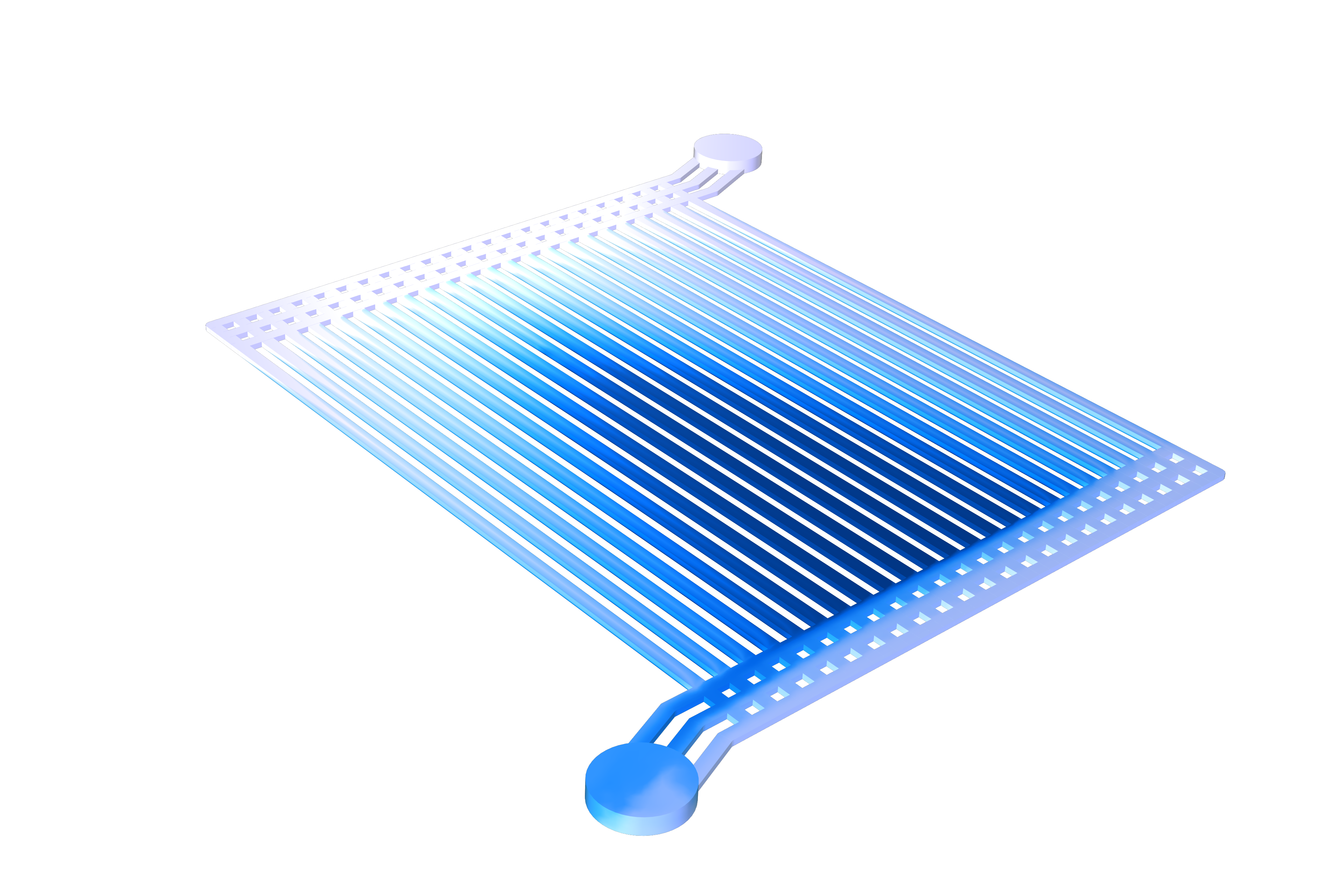 Un revestimiento con un troquel de ranuras simulado con el nuevo módulo de flujo de polímeros. Los modelos de flujo de fluidos como este, también ven importantes mejoras de rendimiento en COMSOL Multiphysics versión 5.6.