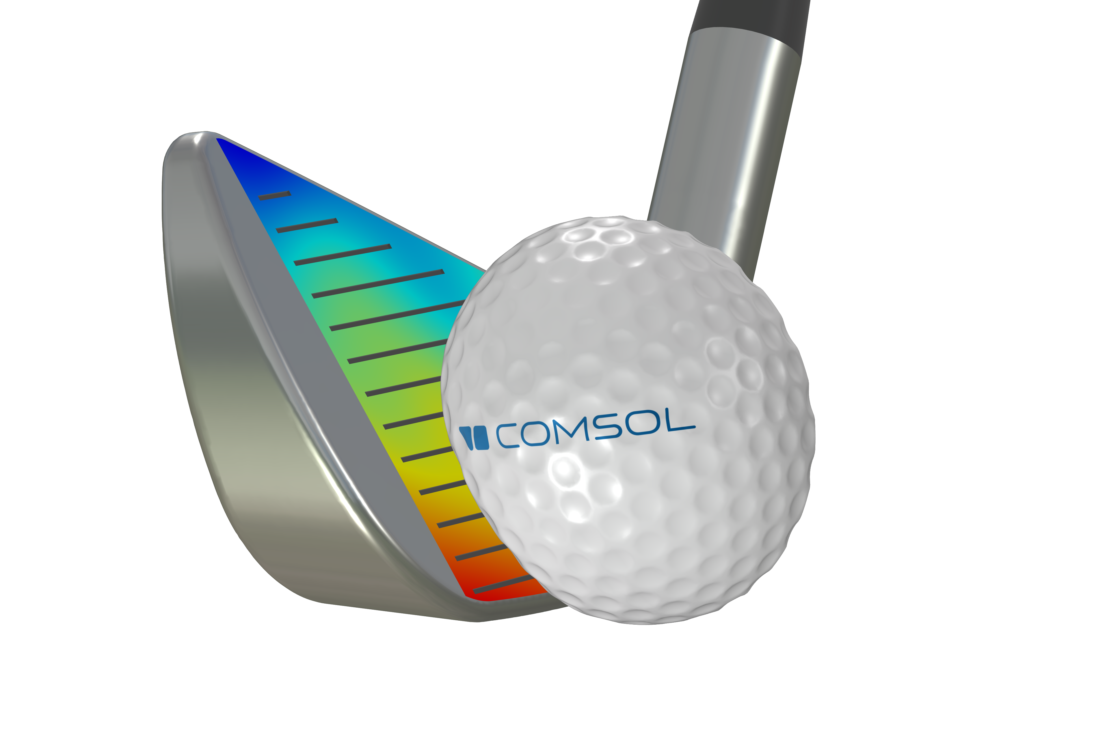 Una simulación de contacto transitorio al golpear una pelota de golf con un hierro.