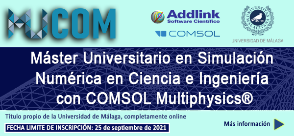 Esta semana ha comenzado el periodo de preinscripción de la tercera edición del Máster Universitario Simulación Numérica en Ciencia e Ingeniería en COMSOL Multiphysics® (MUCOM) (curso 2021-2022) y finalizará el 25 de septiembre de 2021.