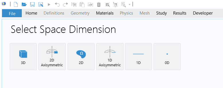 Figura 1: Selección de la dimensión en COMSOL Multiphysics.