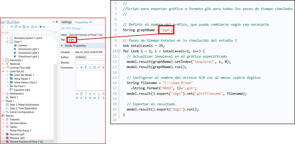 Figura 5. Ejemplo de script en Python para crear una animación a partir de las imágenes en formato glTF importadas de COMSOL Multiphysics®.