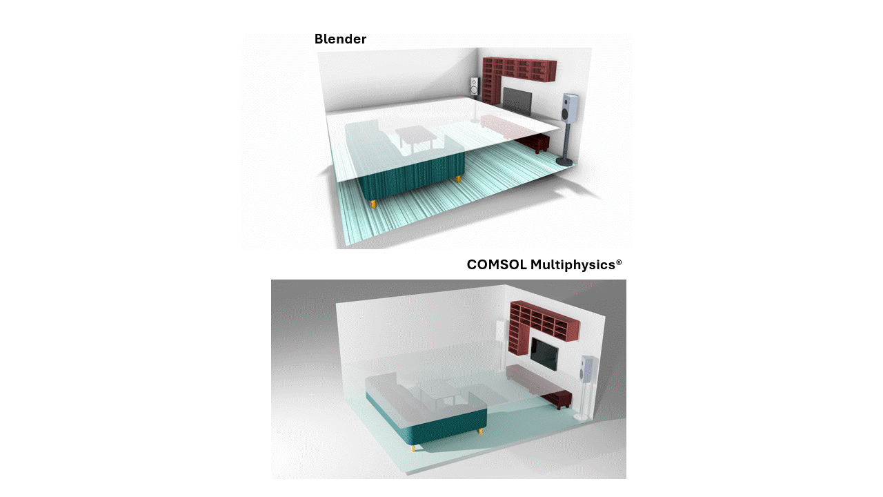 Figura 9. Wave-Based Time-Domain Room Acoustics. Visualización en Blender y COMSOL Multiphysics®.