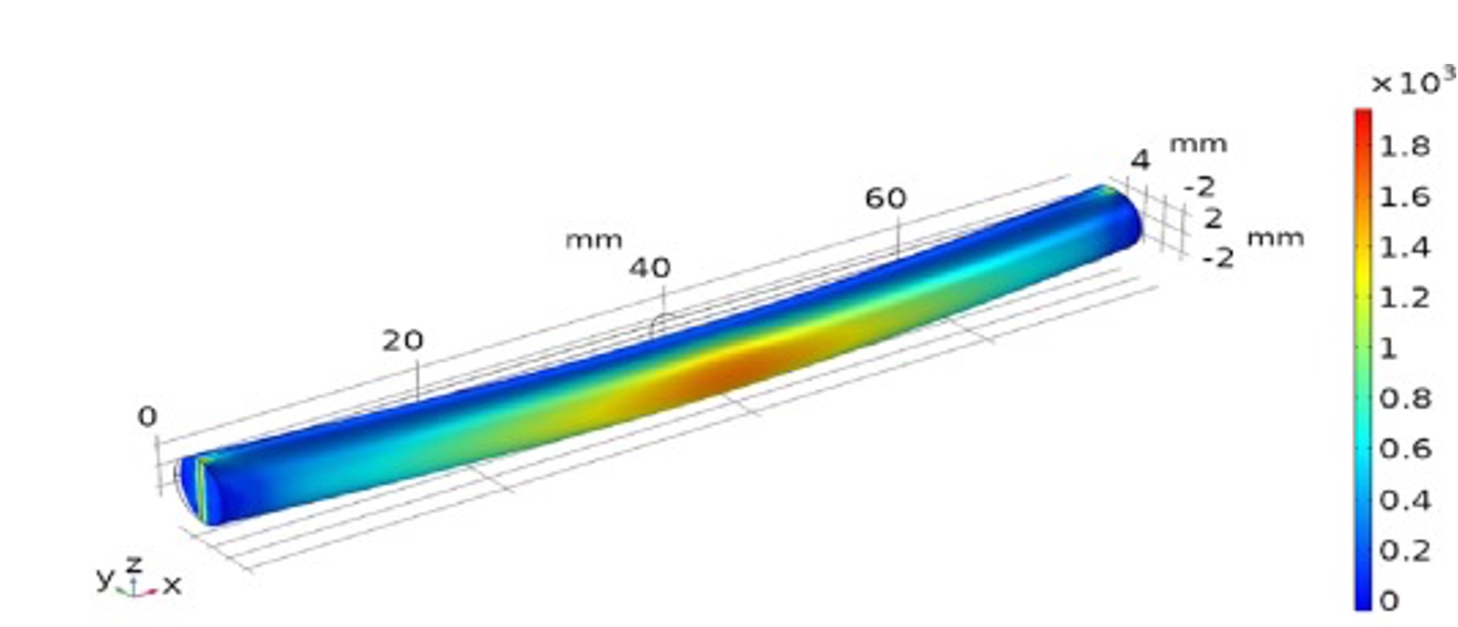 Los autores implementaron en COMSOL Multiphysics® ecuaciones de transporte y mecánica de sólidos para modelizar las deformaciones relacionadas con la expansión del hidrógeno en la red cristalina del acero. El modelo se desarrolló de forma consistente con los resultados experimentales obtenidos empleando muestras de cable como las que se muestra en la Figura 1.