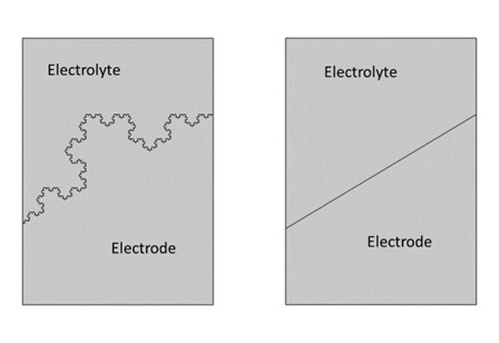 Figura 3. Geometría de una celda con diferentes formas de superficie del electrodo: un copo de nieve de Koch y una superficie plana.