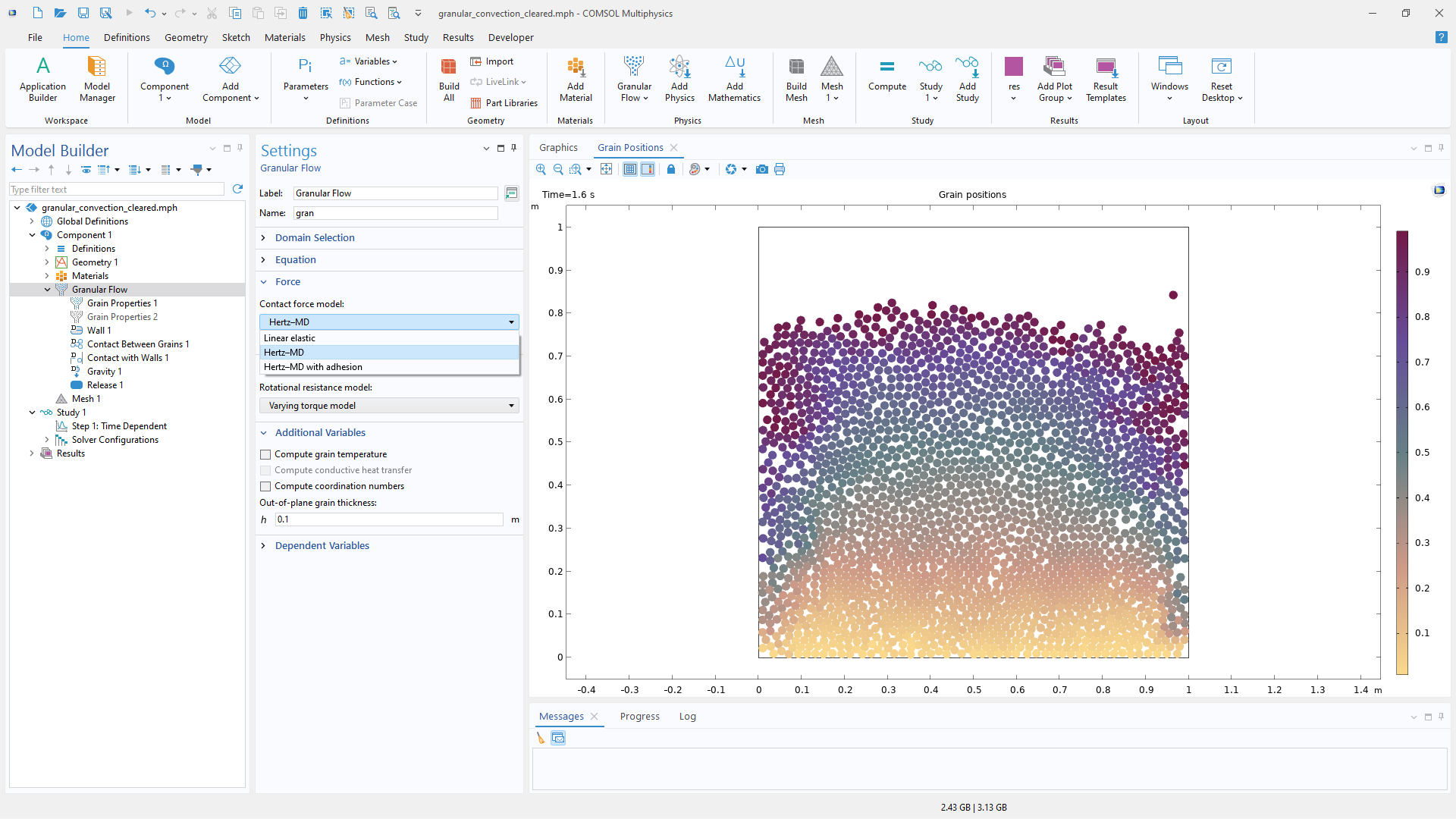 Figura 1. Nuevo módulo de flujo granular (Granula Flow Module) disponible en la versión 6.4 de COMSOL Multiphysics®.