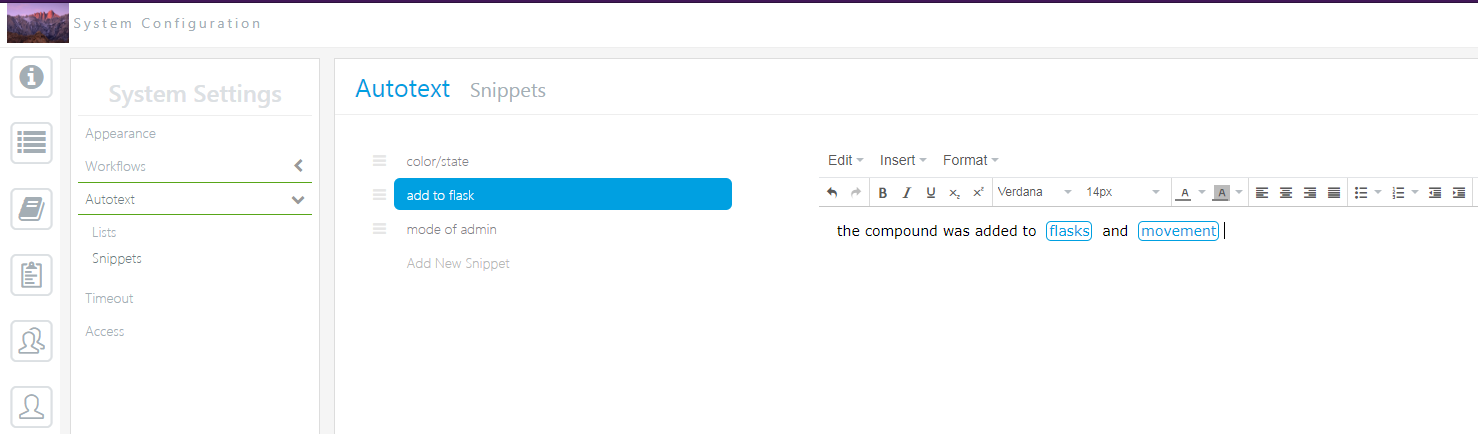 Ahora, los administradores pueden definir texto personalizado disponible para el usuario, de esta forma se armoniza el idioma y la entrada de datos. El autotexto puede ser texto libre o listas de fragmentos definidos.
