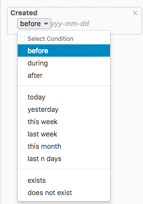 Otra novedad son las búsquedas por fecha. Combinando una de las condiciones “antes”, “durante” y “después” con la selección de una fecha concreta en el calendario, se reducen notablemente los resultados que el cuaderno nos ofrece.