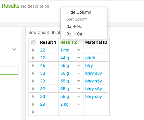 Ahora se pueden ordenar las tablas alfabéticamente o numéricamente. Las columnas que usan números con unidades se ordenan en relación con las unidades (por ejemplo, mg <g <kg). Cualquier nuevo orden de clasificación no se conserva y no se incluye en los cambios en el historial y se puede archivar en una tabla en modo de sólo lectura.