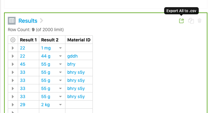 Los datos en las tablas también se pueden descargar como un archivo csv, incluidas todas las columnas mostradas.