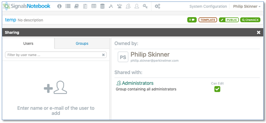 Las siguientes capacidades solo están disponibles para usuarios y administradores de Signals Notebook Standard, E3 o Private Cloud y no están disponibles como parte de Signals Notebook Individual Edition.