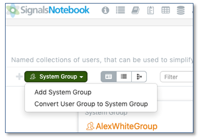 El sistema ahora también diferencia entre los grupos del sistema, utilizados para la seguridad y para compartir las plantillas del sistema y las plantillas de tabla, y los grupos de usuarios creados por los usuarios finales. Solo los grupos del sistema pueden usarse con fines administrativos. Todos los grupos del sistema se comparten con privilegios de edición con todos los miembros del grupo de administradores del sistema, lo que permite a todos los administradores del sistema ver y modificar los grupos del sistema. El administrador del sistema también puede promover un grupo de usuarios existente para que se convierta en un grupo del sistema si es necesario.