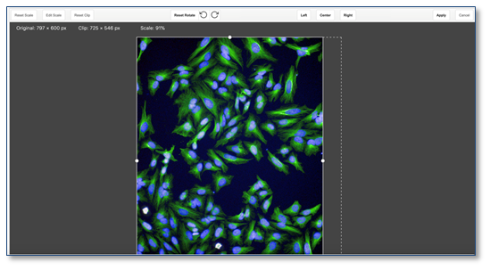 Las imágenes ahora se pueden rotar, si es necesario, cambiando la orientación. La rotación está disponible en la vista "Editar imagen". La rotación de la imagen no rota las anotaciones.
