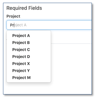 Cuando un administrador ha configurado un Atributo para usar en "Propiedades del experimento" o para usar en "Materiales", "Muestras" o "Tablas", el Usuario ahora tiene una búsqueda de escritura anticipada de valores en lugar de una lista desplegable para facilitar el uso de listas más largas.