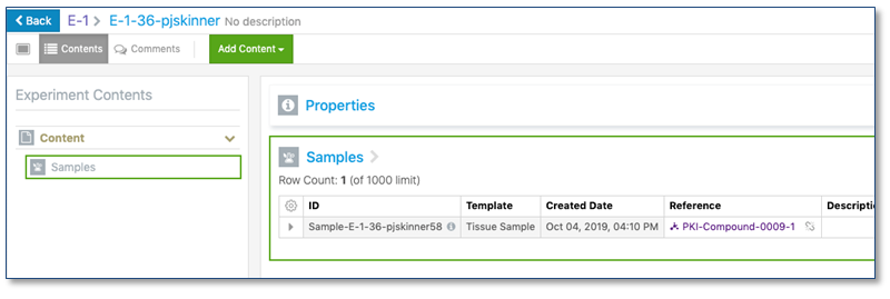 El tipo de propiedad de referencia interna se ha ampliado para su uso en muestras y tablas de materiales. Los administradores ahora pueden definir propiedades personalizadas para estos elementos que permiten a un usuario final agregar una referencia hipervinculada a otro elemento dentro de Signals Notebook.