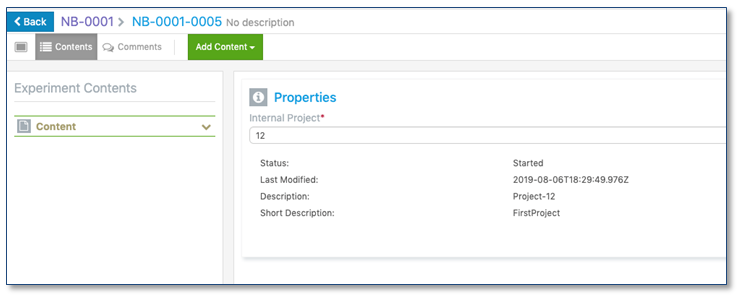 Los administradores pueden definir propiedades de referencia internas para los campos Experimento/Cuaderno en las plantillas del sistema, o en los campos de nivel Activo o Lote en Materiales. Los usuarios finales pueden seleccionar otros objetos dentro de Signals Notebook para crear una referencia a ese objeto