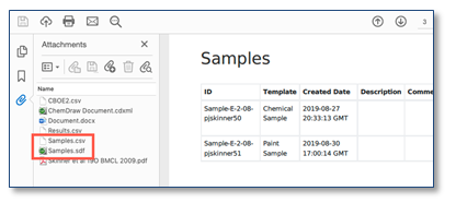 Los archivos .csv y .sdf también se incluyen opcionalmente en los archivos adjuntos cuando el experimento se imprime en PDF.