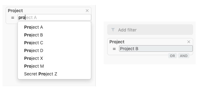 Se ha agregado una opción OR a los filtros, lo que permite aplicar múltiples opciones del mismo tipo de filtro. Además, para los filtros de tipo cadena ya no distingue entre mayúsculas y minúsculas y permite escribir, con anticipación, palabras contenidas en una frase de varias palabras.