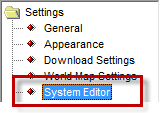 Paso 2: Seleccionar System Editor de la lista de Ajustes (Settings)