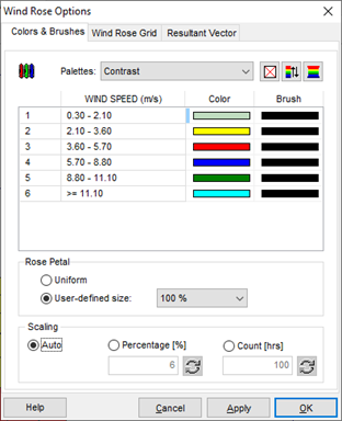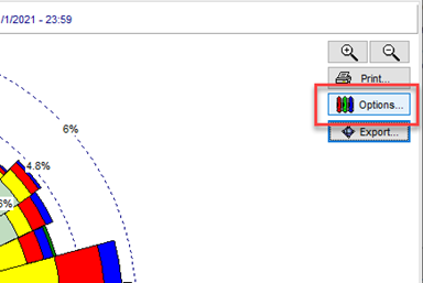 - Haga clic en el botón Options en la pestaña Wind Rose.
