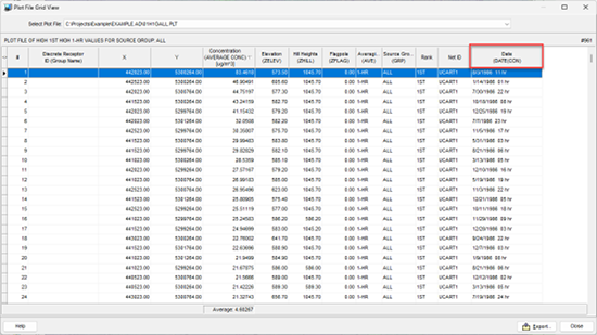 Conocer la fecha y hora de la ocurrencia de una concentración máxima es fundamental para el análisis e interpretación de datos. Los archivos Contour Plot Files contienen esta información, y AERMOD View incluye una utilidad llamada Plot File Grid View que facilita su búsqueda y lectura. Consulte los pasos a continuación para acceder a la Plot File Grid View.