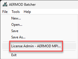 Paso 2: Abra Batcher y seleccione la opción de menú File | License Admin – AERMOD MPI.
